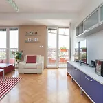 The property offers a balcony and a seating area equipped with a flat-screen TV with satellite channels, as well as comforts like an iron and ironing board, and an air conditioner. The apartment is also furnished with a sofa. Beds fitted with feather pillows are at guests' disposal. A separate toilet and a shower are available in the bathroom. Moreover, there are a hair dryer, toiletries, and towels as well.
